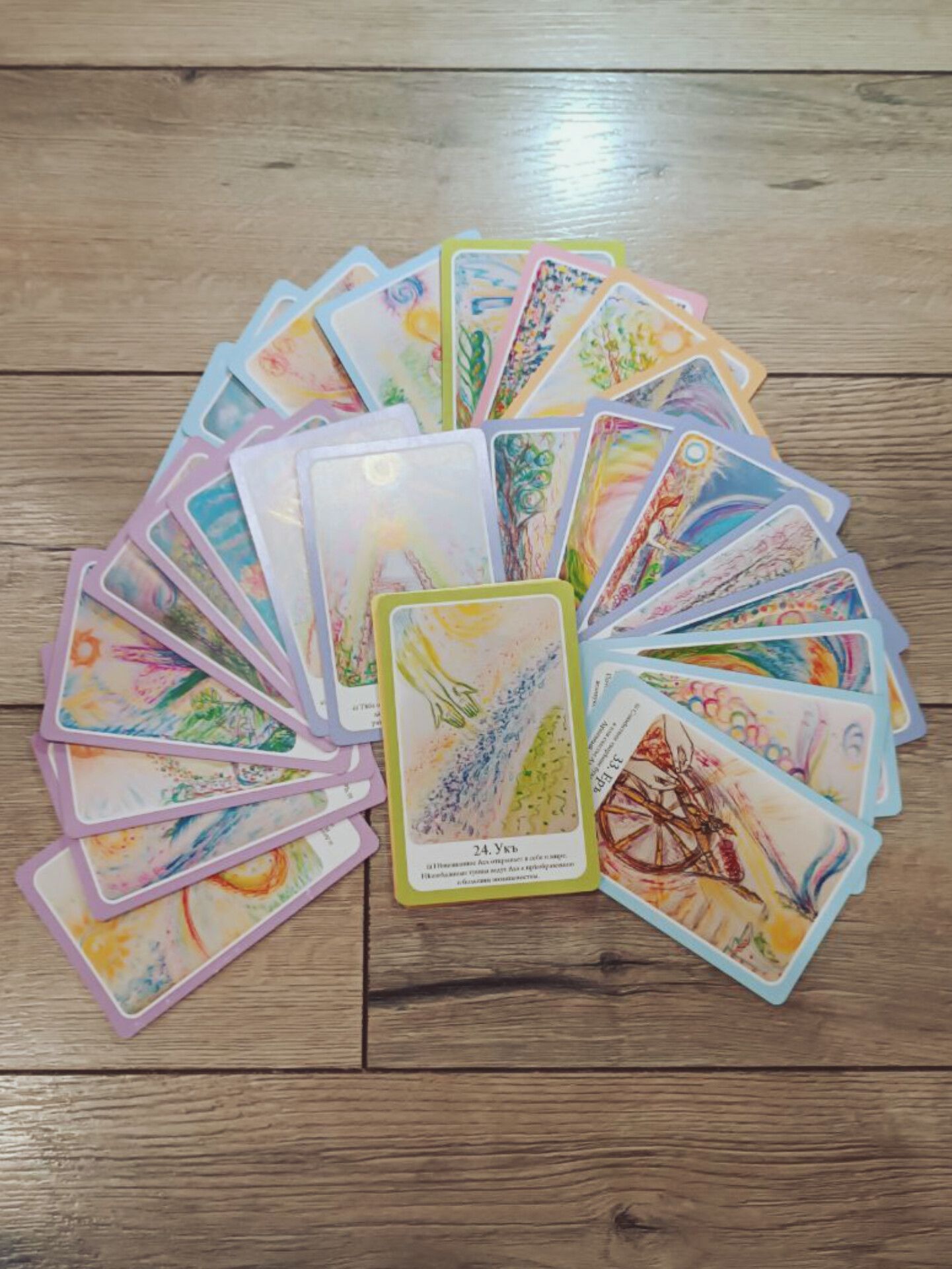 Если перед тобой стоит задача и тебе нужна подсказка или благословение, сформулируй запрос и достань 3 карты, не глядя. Положи в ряд перед собой.