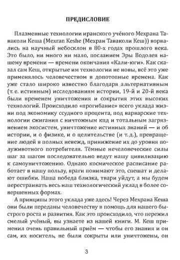 Эта книга — первое издание в России, рассказывающее о наноплазменных технологиях всемирно известного иранского учёного Мехрана Таваколи Кеша. Его открытия сравнимы с открытиями Н. Теслы, а возможно они ещё глобальнее. М. Кеш заявляет, что его технологии издавна были известны человечеству. Божественно управляемый прорыв в нашу жизнь наноплазменных технологий Мехрана Кеша даёт твёрдую уверенность в возможности возрождения гармоничного существования человечества на этой планете.